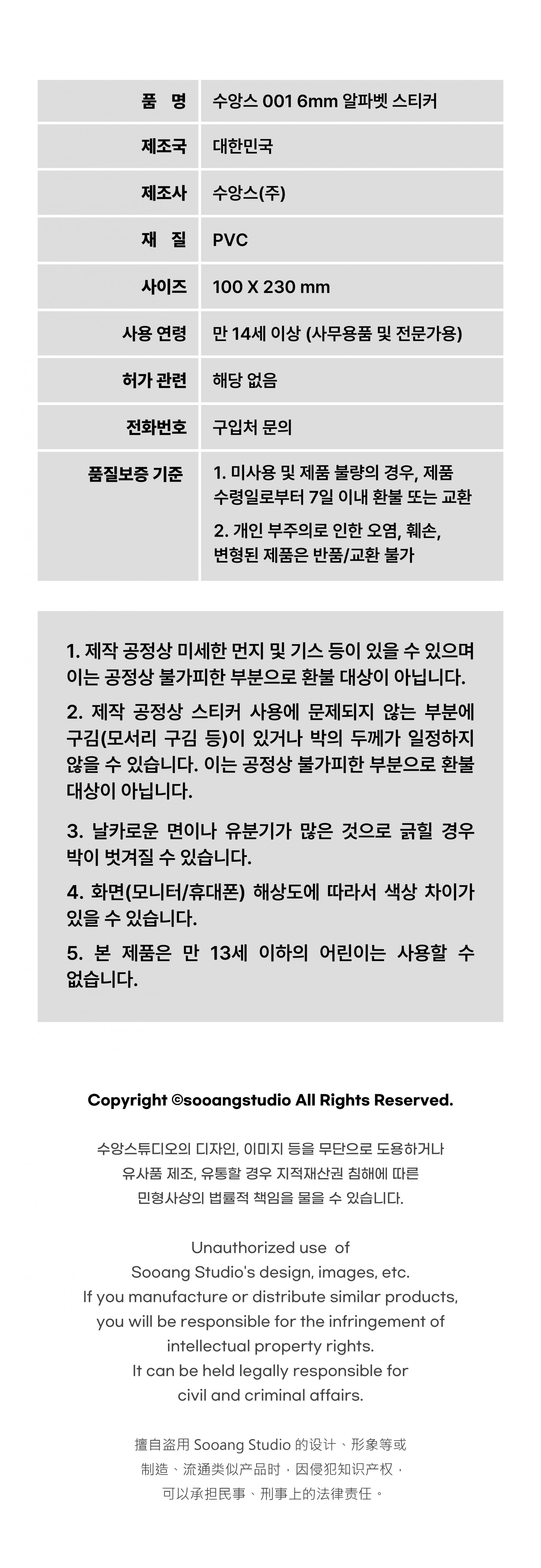 수앙스 001 6mm 알파벳 스티커에요!