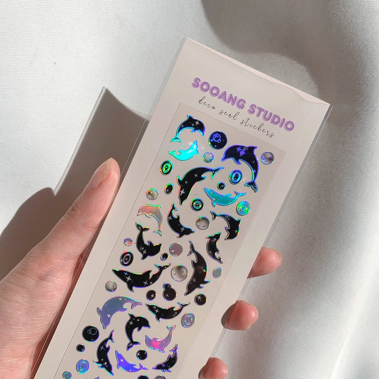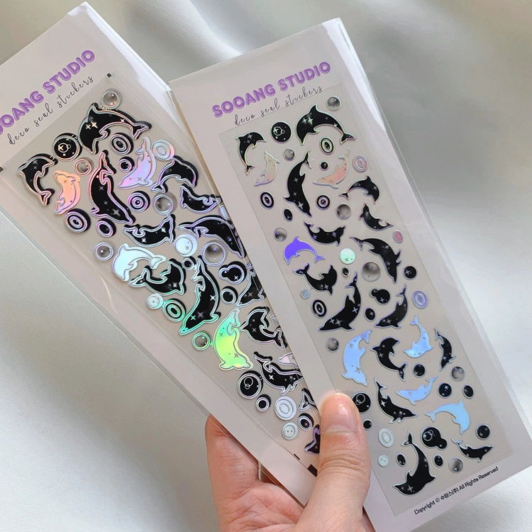 밤하늘을 담아 제작한 돌고래 스티커에요:)